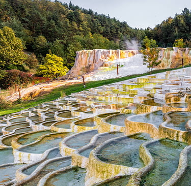A natural masterpiece where mineral springs carve dramatic white terraces, blending wellness and wonder in the Hungarian countryside